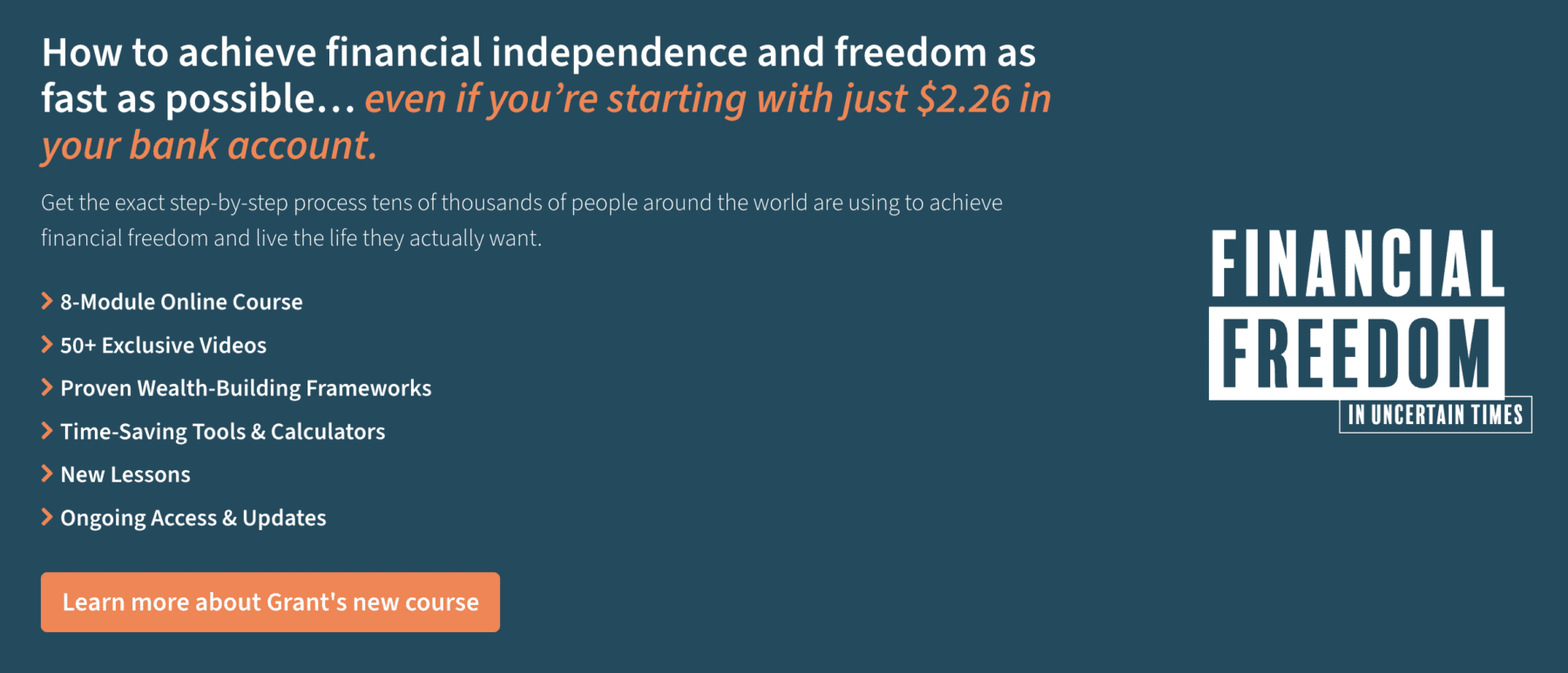 I relaunched the Financial Freedom Podcast and will release new episodes more regularly. I’ve already recorded 15 new episodes, so more are dropping soon. To subscribe, check out: https://grantsabatier.com/podcast/